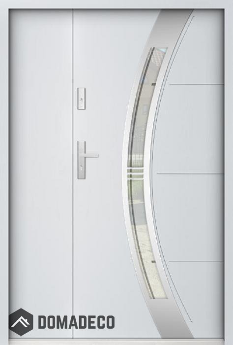Die Türen bestehen aus Edelstahl. Im Inneren ist es mit PUR-Polyurethanschaum und Holz gefüllt. Die Türblattdicke beträgt 55 mm. Doppeldichtungssystem - Eine Dichtung befindet sich am unteren Rand des Rahmens und die andere im Lagerteil des Türblatts. Sie reduzieren Vibrationen und schützen Ihr Zuhause vor Wärmeverlust. Sie ändern ihre Lautstärke nicht unter dem Einfluss von Wetterbedingungen. Der Türrahmen hat einbruchhemmende Verstärkungen in den Scharnierteilen und Verriegelungspunkten.