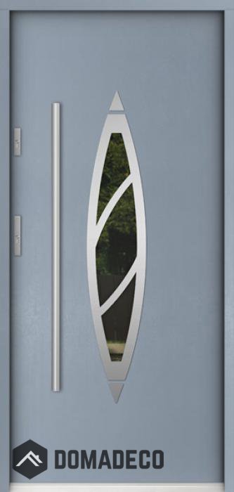 Die Türen bestehen aus Edelstahl. Im Inneren ist es mit PUR-Polyurethanschaum und Holz gefüllt. Die Türblattdicke beträgt 55 mm. Doppeldichtungssystem - Eine Dichtung befindet sich am unteren Rand des Rahmens und die andere im Lagerteil des Türblatts. Sie reduzieren Vibrationen und schützen Ihr Zuhause vor Wärmeverlust. Sie ändern ihre Lautstärke nicht unter dem Einfluss von Wetterbedingungen. Der Türrahmen hat einbruchhemmende Verstärkungen in den Scharnierteilen und Verriegelungspunkten.