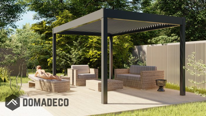 Das innovative Design macht unsere Pergola für viele Arten von Gebäuden und Gärten geeignet und ist ein luxuriöses dekoratives Element des Raums rund um das Haus. Bewegliche Lamellen, Seitenverglasungen und Sonnenblenden bieten unbegrenzte Anordnungsmöglichkeiten. Unser Produkt wird selbst den anspruchsvollsten Geschmack zufrieden stellen.