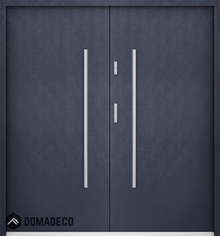 Die Türen bestehen aus Edelstahl. Im Inneren ist es mit PUR-Polyurethanschaum und Holz gefüllt. Die Türblattdicke beträgt 55 mm. Doppeldichtungssystem - Eine Dichtung befindet sich am unteren Rand des Rahmens und die andere im Lagerteil des Türblatts. Sie reduzieren Vibrationen und schützen Ihr Zuhause vor Wärmeverlust. Sie ändern ihre Lautstärke nicht unter dem Einfluss von Wetterbedingungen. Der Türrahmen hat einbruchhemmende Verstärkungen in den Scharnierteilen und Verriegelungspunkten.