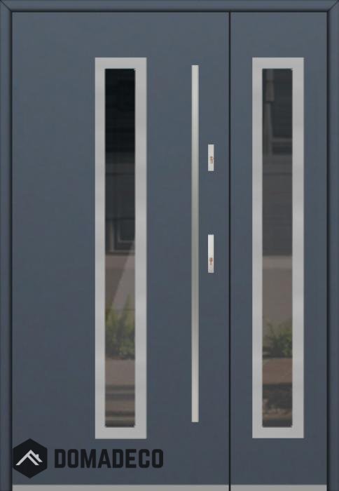Die Türen bestehen aus Edelstahl. Im Inneren ist es mit PUR-Polyurethanschaum und Holz gefüllt. Die Türblattdicke beträgt 54 mm. Doppeldichtungssystem - Eine Dichtung befindet sich am unteren Rand des Rahmens und die andere im Lagerteil des Türblatts. Sie reduzieren Vibrationen und schützen Ihr Zuhause vor Wärmeverlust. Sie ändern ihre Lautstärke nicht unter dem Einfluss von Wetterbedingungen. Der Türrahmen hat einbruchhemmende Verstärkungen in den Scharnierteilen und Verriegelungspunkten.
