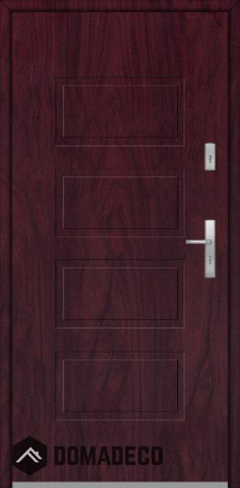 Die Türen bestehen aus Edelstahl. Im Inneren ist es mit PUR-Polyurethanschaum und Holz gefüllt. Die Türblattdicke beträgt 64 mm. Doppeldichtungssystem - Eine Dichtung befindet sich am unteren Rand des Rahmens und die andere im Lagerteil des Türblatts. Sie reduzieren Vibrationen und schützen Ihr Zuhause vor Wärmeverlust. Sie ändern ihre Lautstärke nicht unter dem Einfluss von Wetterbedingungen. Der Türrahmen hat einbruchhemmende Verstärkungen in den Scharnierteilen und Verriegelungspunkten.