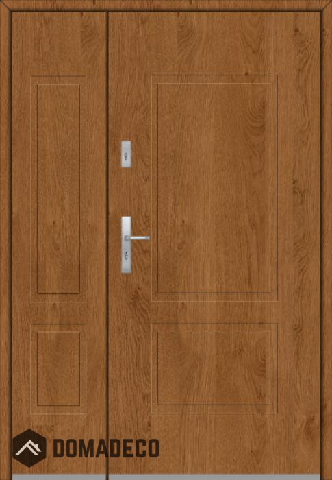 Die Türen bestehen aus Edelstahl. Im Inneren ist es mit PUR-Polyurethanschaum und Holz gefüllt. Die Türblattdicke beträgt 54 mm. Doppeldichtungssystem - Eine Dichtung befindet sich am unteren Rand des Rahmens und die andere im Lagerteil des Türblatts. Sie reduzieren Vibrationen und schützen Ihr Zuhause vor Wärmeverlust. Sie ändern ihre Lautstärke nicht unter dem Einfluss von Wetterbedingungen. Der Türrahmen hat einbruchhemmende Verstärkungen in den Scharnierteilen und Verriegelungspunkten.
