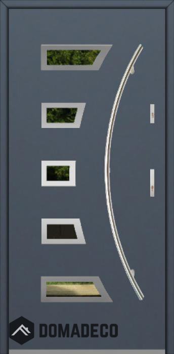 Die Türen bestehen aus Edelstahl. Im Inneren ist es mit PUR-Polyurethanschaum und Holz gefüllt. Die Türblattdicke beträgt 64 mm. Doppeldichtungssystem - Eine Dichtung befindet sich am unteren Rand des Rahmens und die andere im Lagerteil des Türblatts. Sie reduzieren Vibrationen und schützen Ihr Zuhause vor Wärmeverlust. Sie ändern ihre Lautstärke nicht unter dem Einfluss von Wetterbedingungen. Der Türrahmen hat einbruchhemmende Verstärkungen in den Scharnierteilen und Verriegelungspunkten.