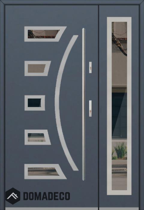Die Türen bestehen aus Edelstahl. Im Inneren ist es mit PUR-Polyurethanschaum und Holz gefüllt. Die Türblattdicke beträgt 54 mm. Doppeldichtungssystem - Eine Dichtung befindet sich am unteren Rand des Rahmens und die andere im Lagerteil des Türblatts. Sie reduzieren Vibrationen und schützen Ihr Zuhause vor Wärmeverlust. Sie ändern ihre Lautstärke nicht unter dem Einfluss von Wetterbedingungen. Der Türrahmen hat einbruchhemmende Verstärkungen in den Scharnierteilen und Verriegelungspunkten.