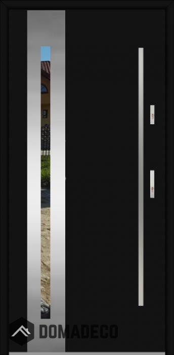 Die Türen bestehen aus Edelstahl. Im Inneren ist es mit PUR-Polyurethanschaum und Holz gefüllt. Die Türblattdicke beträgt 64 mm. Doppeldichtungssystem - Eine Dichtung befindet sich am unteren Rand des Rahmens und die andere im Lagerteil des Türblatts. Sie reduzieren Vibrationen und schützen Ihr Zuhause vor Wärmeverlust. Sie ändern ihre Lautstärke nicht unter dem Einfluss von Wetterbedingungen. Der Türrahmen hat einbruchhemmende Verstärkungen in den Scharnierteilen und Verriegelungspunkten.