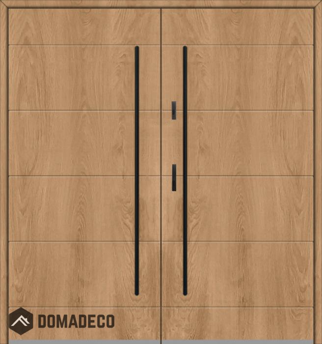 Die Türen bestehen aus Edelstahl. Im Inneren ist es mit PUR-Polyurethanschaum und Holz gefüllt. Die Türblattdicke beträgt 54 mm. Doppeldichtungssystem - Eine Dichtung befindet sich am unteren Rand des Rahmens und die andere im Lagerteil des Türblatts. Sie reduzieren Vibrationen und schützen Ihr Zuhause vor Wärmeverlust. Sie ändern ihre Lautstärke nicht unter dem Einfluss von Wetterbedingungen. Der Türrahmen hat einbruchhemmende Verstärkungen in den Scharnierteilen und Verriegelungspunkten.