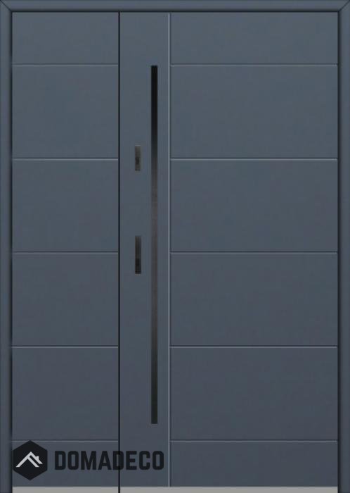 Die Türen bestehen aus Edelstahl. Im Inneren ist es mit PUR-Polyurethanschaum und Holz gefüllt. Die Türblattdicke beträgt 54 mm. Doppeldichtungssystem - Eine Dichtung befindet sich am unteren Rand des Rahmens und die andere im Lagerteil des Türblatts. Sie reduzieren Vibrationen und schützen Ihr Zuhause vor Wärmeverlust. Sie ändern ihre Lautstärke nicht unter dem Einfluss von Wetterbedingungen. Der Türrahmen hat einbruchhemmende Verstärkungen in den Scharnierteilen und Verriegelungspunkten.