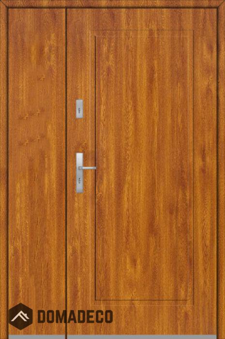 Die Türen bestehen aus Edelstahl. Im Inneren ist es mit PUR-Polyurethanschaum und Holz gefüllt. Die Türblattdicke beträgt 54 mm. Doppeldichtungssystem - Eine Dichtung befindet sich am unteren Rand des Rahmens und die andere im Lagerteil des Türblatts. Sie reduzieren Vibrationen und schützen Ihr Zuhause vor Wärmeverlust. Sie ändern ihre Lautstärke nicht unter dem Einfluss von Wetterbedingungen. Der Türrahmen hat einbruchhemmende Verstärkungen in den Scharnierteilen und Verriegelungspunkten.