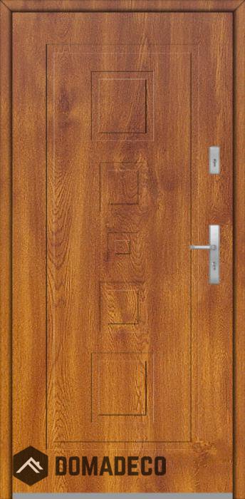 Die Türen bestehen aus Edelstahl. Im Inneren ist es mit PUR-Polyurethanschaum und Holz gefüllt. Die Türblattdicke beträgt 64 mm. Doppeldichtungssystem - Eine Dichtung befindet sich am unteren Rand des Rahmens und die andere im Lagerteil des Türblatts. Sie reduzieren Vibrationen und schützen Ihr Zuhause vor Wärmeverlust. Sie ändern ihre Lautstärke nicht unter dem Einfluss von Wetterbedingungen. Der Türrahmen hat einbruchhemmende Verstärkungen in den Scharnierteilen und Verriegelungspunkten.