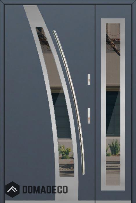 Die Türen bestehen aus Edelstahl. Im Inneren ist es mit PUR-Polyurethanschaum und Holz gefüllt. Die Türblattdicke beträgt 54 mm. Doppeldichtungssystem - Eine Dichtung befindet sich am unteren Rand des Rahmens und die andere im Lagerteil des Türblatts. Sie reduzieren Vibrationen und schützen Ihr Zuhause vor Wärmeverlust. Sie ändern ihre Lautstärke nicht unter dem Einfluss von Wetterbedingungen. Der Türrahmen hat einbruchhemmende Verstärkungen in den Scharnierteilen und Verriegelungspunkten.