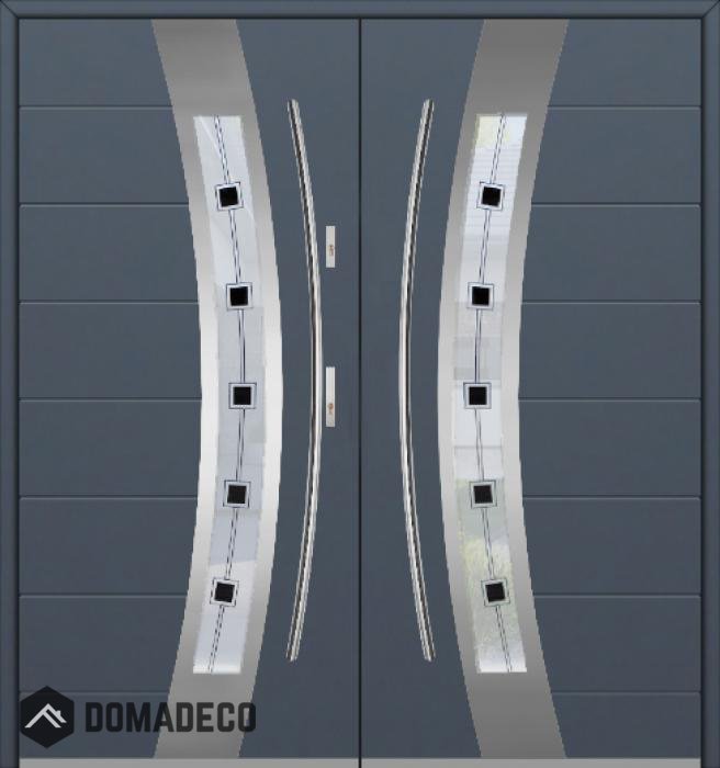 Die Türen bestehen aus Edelstahl. Im Inneren ist es mit PUR-Polyurethanschaum und Holz gefüllt. Die Türblattdicke beträgt 54 mm. Doppeldichtungssystem - Eine Dichtung befindet sich am unteren Rand des Rahmens und die andere im Lagerteil des Türblatts. Sie reduzieren Vibrationen und schützen Ihr Zuhause vor Wärmeverlust. Sie ändern ihre Lautstärke nicht unter dem Einfluss von Wetterbedingungen. Der Türrahmen hat einbruchhemmende Verstärkungen in den Scharnierteilen und Verriegelungspunkten.