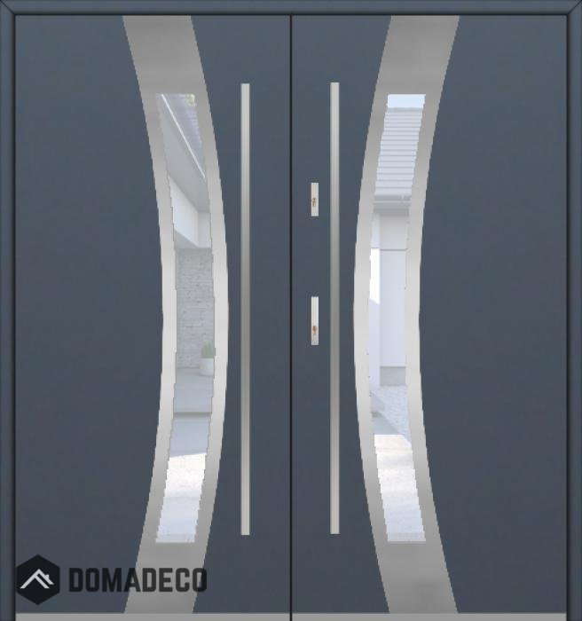 Die Türen bestehen aus Edelstahl. Im Inneren ist es mit PUR-Polyurethanschaum und Holz gefüllt. Die Türblattdicke beträgt 54 mm. Doppeldichtungssystem - Eine Dichtung befindet sich am unteren Rand des Rahmens und die andere im Lagerteil des Türblatts. Sie reduzieren Vibrationen und schützen Ihr Zuhause vor Wärmeverlust. Sie ändern ihre Lautstärke nicht unter dem Einfluss von Wetterbedingungen. Der Türrahmen hat einbruchhemmende Verstärkungen in den Scharnierteilen und Verriegelungspunkten.