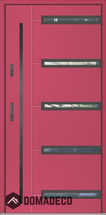 Die Türen bestehen aus Edelstahl. Im Inneren ist es mit PUR-Polyurethanschaum und Holz gefüllt. Die Türblattdicke beträgt 64 mm. Doppeldichtungssystem - Eine Dichtung befindet sich am unteren Rand des Rahmens und die andere im Lagerteil des Türblatts. Sie reduzieren Vibrationen und schützen Ihr Zuhause vor Wärmeverlust. Sie ändern ihre Lautstärke nicht unter dem Einfluss von Wetterbedingungen. Der Türrahmen hat einbruchhemmende Verstärkungen in den Scharnierteilen und Verriegelungspunkten.