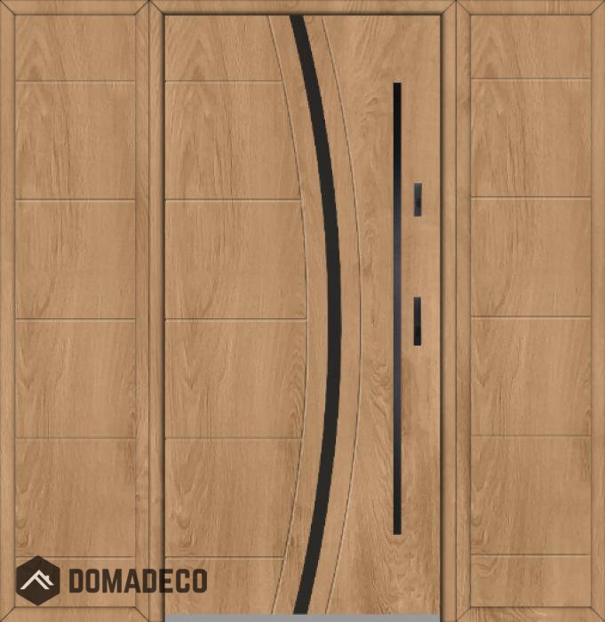 Die Türen bestehen aus Edelstahl. Im Inneren ist es mit PUR-Polyurethanschaum und Holz gefüllt. Die Türblattdicke beträgt 54 mm. Doppeldichtungssystem - Eine Dichtung befindet sich am unteren Rand des Rahmens und die andere im Lagerteil des Türblatts. Sie reduzieren Vibrationen und schützen Ihr Zuhause vor Wärmeverlust. Sie ändern ihre Lautstärke nicht unter dem Einfluss von Wetterbedingungen. Der Türrahmen hat einbruchhemmende Verstärkungen in den Scharnierteilen und Verriegelungspunkten.