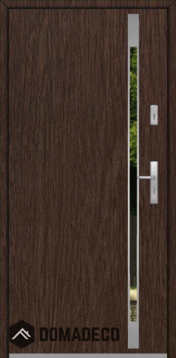 Modernes Design basierend auf einer neuen Technologie, bestehend aus der Spülung von Edelstahlelementen auf der Türoberfläche.