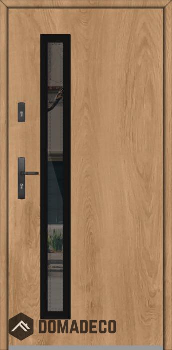Die Tür ist aus Edelstahl gefertigt. Innen sind sie mit Schaumstoff und Holz gefüllt.