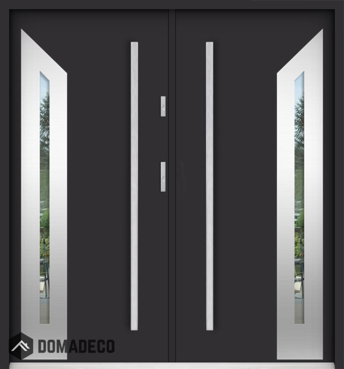 Die Türen bestehen aus Edelstahl. Im Inneren ist es mit PUR-Polyurethanschaum und Holz gefüllt. Die Türblattdicke beträgt 55 mm. Doppeldichtungssystem - Eine Dichtung befindet sich am unteren Rand des Rahmens und die andere im Lagerteil des Türblatts. Sie reduzieren Vibrationen und schützen Ihr Zuhause vor Wärmeverlust. Sie ändern ihre Lautstärke nicht unter dem Einfluss von Wetterbedingungen. Der Türrahmen hat einbruchhemmende Verstärkungen in den Scharnierteilen und Verriegelungspunkten.