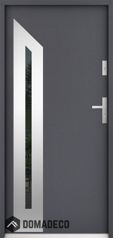 Die Türen bestehen aus Edelstahl. Im Inneren ist es mit PUR-Polyurethanschaum und Holz gefüllt. Die Türblattdicke beträgt 55 mm. Doppeldichtungssystem - Eine Dichtung befindet sich am unteren Rand des Rahmens und die andere im Lagerteil des Türblatts. Sie reduzieren Vibrationen und schützen Ihr Zuhause vor Wärmeverlust. Sie ändern ihre Lautstärke nicht unter dem Einfluss von Wetterbedingungen. Der Türrahmen hat einbruchhemmende Verstärkungen in den Scharnierteilen und Verriegelungspunkten.