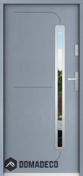 Die Türen bestehen aus Edelstahl. Im Inneren ist es mit PUR-Polyurethanschaum und Holz gefüllt. Die Türblattdicke beträgt 55 mm. Doppeldichtungssystem - Eine Dichtung befindet sich am unteren Rand des Rahmens und die andere im Lagerteil des Türblatts. Sie reduzieren Vibrationen und schützen Ihr Zuhause vor Wärmeverlust. Sie ändern ihre Lautstärke nicht unter dem Einfluss von Wetterbedingungen. Der Türrahmen hat einbruchhemmende Verstärkungen in den Scharnierteilen und Verriegelungspunkten.