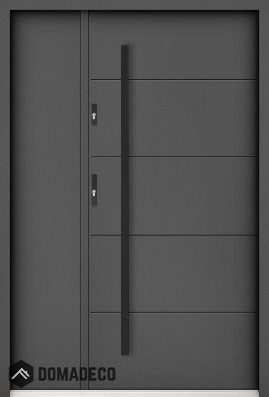 Die Türen bestehen aus Edelstahl. Im Inneren ist es mit PUR-Polyurethanschaum und Holz gefüllt. Die Türblattdicke beträgt 55 mm. Doppeldichtungssystem - Eine Dichtung befindet sich am unteren Rand des Rahmens und die andere im Lagerteil des Türblatts. Sie reduzieren Vibrationen und schützen Ihr Zuhause vor Wärmeverlust. Sie ändern ihre Lautstärke nicht unter dem Einfluss von Wetterbedingungen. Der Türrahmen hat einbruchhemmende Verstärkungen in den Scharnierteilen und Verriegelungspunkten.