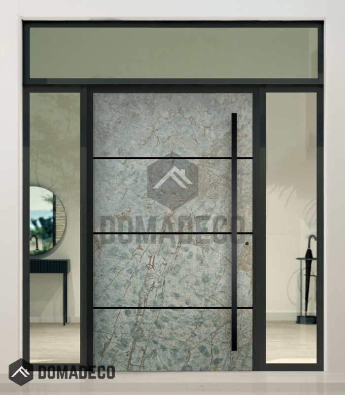 Die Gesamtbreite der Tür ist gleich der Summe aus der Breite der Tür und der Breite des Glasseitenteils