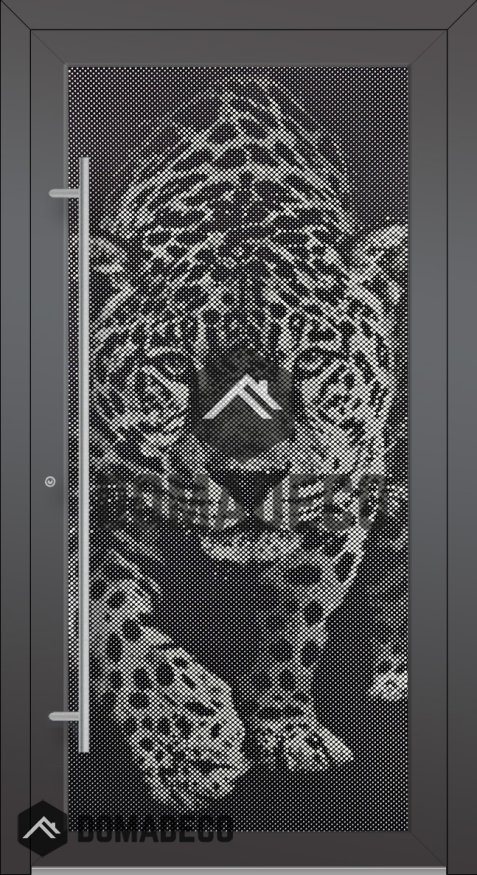 LIM G5 - Glaseingangstür aus Aluminium mit Tigermotiv in der Dekorplatte