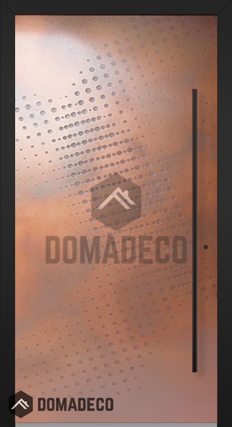 LIM M17 - Aluminium-Drehflügeltür mit Kupfertextur aus gefrästem Metall