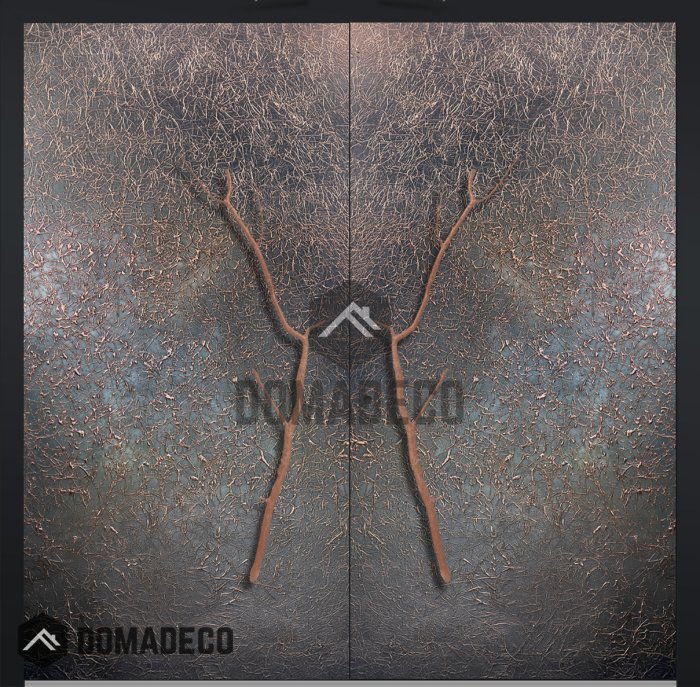Die Türfüllungen bestehen aus gesintertem Quarz. Obwohl Quarzsinter in der Natur nicht vorkommt, besteht die Technologie zu seiner Gewinnung im Mischen und Pressen von u. a. Schieferton, Quarzsand und Granitgestein. Die auf diese Weise hergestellte Mischung wird durch Brennen gehärtet. Türfüllungen aus gesintertem Quarz haben einen industriellen, urbanen Stil und verweisen gleichzeitig auf exklusive und elegante Innenräume.