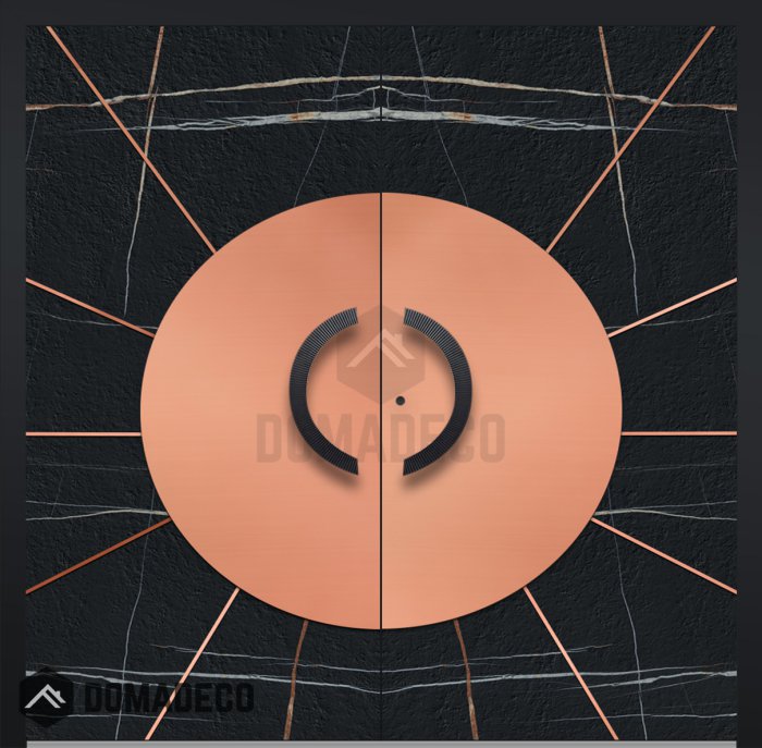 LIM Sahara doppelt – Aluminium-Doppeltür mit Sahara Noir-Sinterquarz und Kupferblech verkleidet