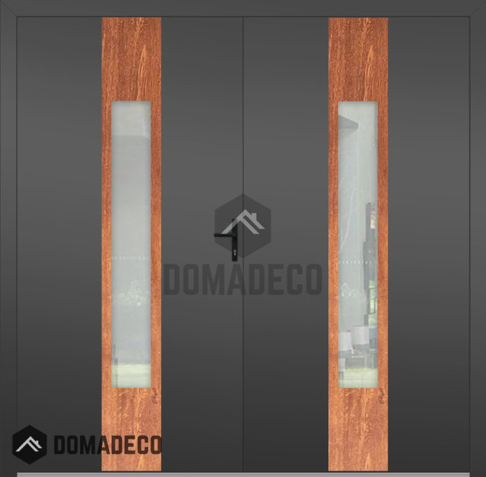 LIM v08 double - doppelte Aluminium-Drehflügeltür mit Holzdekor und Glas