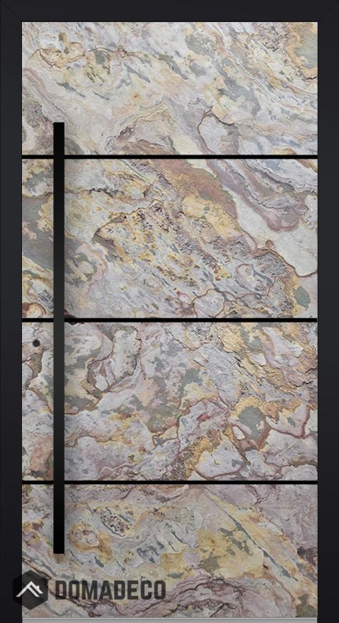 Das Design der Türfüllungen aus Steinfurnier weckt Assoziationen an die monumentalen Gebirgsketten Nordamerikas und die weiten Wüstengebiete der Ureinwohner. Es ist eine perfekte Ergänzung zur Architektur eines modernen Hauses oder eines Loft-Wohnungen.