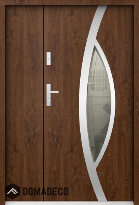 Die Türen bestehen aus Edelstahl. Im Inneren ist es mit PUR-Polyurethanschaum und Holz gefüllt. Die Türblattdicke beträgt 55 mm. Doppeldichtungssystem - Eine Dichtung befindet sich am unteren Rand des Rahmens und die andere im Lagerteil des Türblatts. Sie reduzieren Vibrationen und schützen Ihr Zuhause vor Wärmeverlust. Sie ändern ihre Lautstärke nicht unter dem Einfluss von Wetterbedingungen. Der Türrahmen hat einbruchhemmende Verstärkungen in den Scharnierteilen und Verriegelungspunkten.