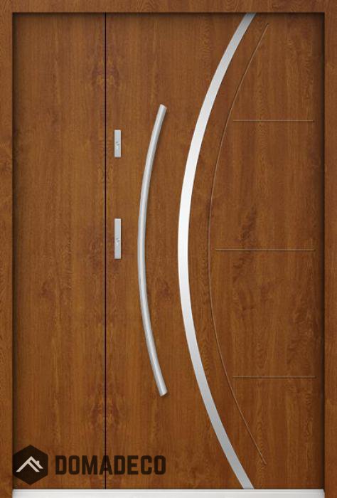 Die Türen bestehen aus Edelstahl. Im Inneren ist es mit PUR-Polyurethanschaum und Holz gefüllt. Die Türblattdicke beträgt 55 mm. Doppeldichtungssystem - Eine Dichtung befindet sich am unteren Rand des Rahmens und die andere im Lagerteil des Türblatts. Sie reduzieren Vibrationen und schützen Ihr Zuhause vor Wärmeverlust. Sie ändern ihre Lautstärke nicht unter dem Einfluss von Wetterbedingungen. Der Türrahmen hat einbruchhemmende Verstärkungen in den Scharnierteilen und Verriegelungspunkten.