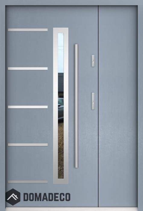 Die Türen bestehen aus Edelstahl. Im Inneren ist es mit PUR-Polyurethanschaum und Holz gefüllt. Die Türblattdicke beträgt 55 mm. Doppeldichtungssystem - Eine Dichtung befindet sich am unteren Rand des Rahmens und die andere im Lagerteil des Türblatts. Sie reduzieren Vibrationen und schützen Ihr Zuhause vor Wärmeverlust. Sie ändern ihre Lautstärke nicht unter dem Einfluss von Wetterbedingungen. Der Türrahmen hat einbruchhemmende Verstärkungen in den Scharnierteilen und Verriegelungspunkten.