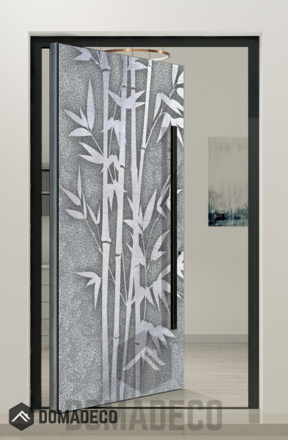 PIVOT Bamboo - Drehtür mit Bambusstruktur aus gefrästem Metall