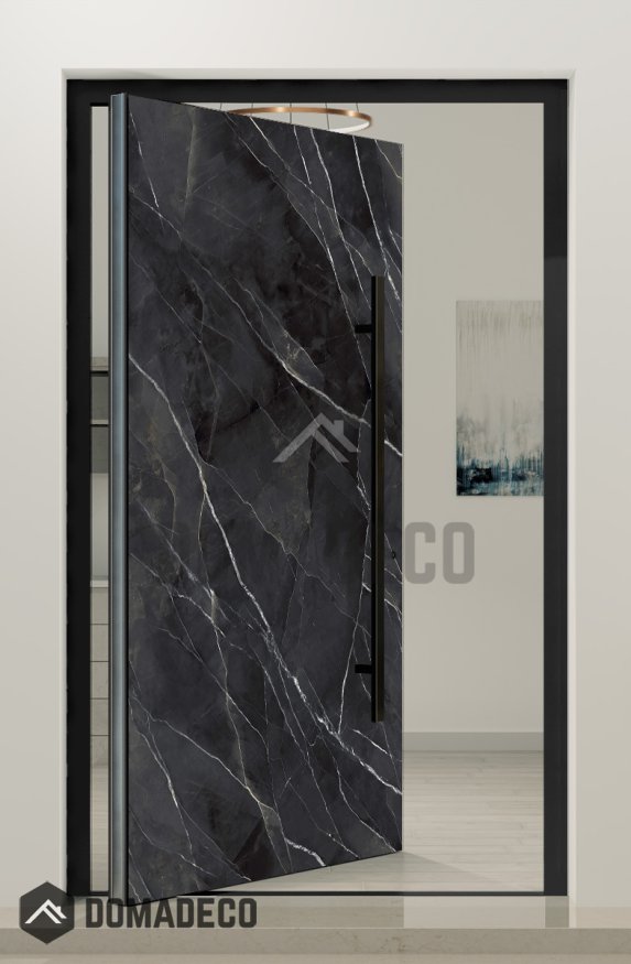 PIVOT Calacatta - Drehtür aus Aluminium mit gesintertem Quarz in Calacatta Schwarz