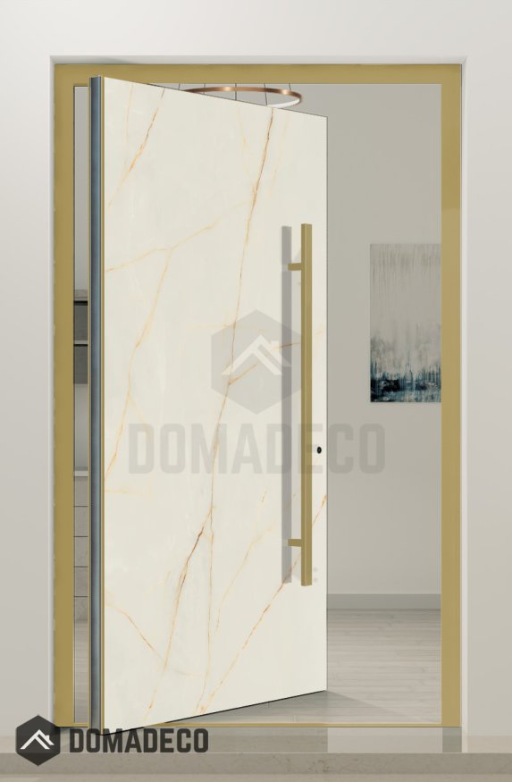 PIVOT Cristallo - Aluminium-Drehtür mit Cristallo-Sinterquarz verkleidet