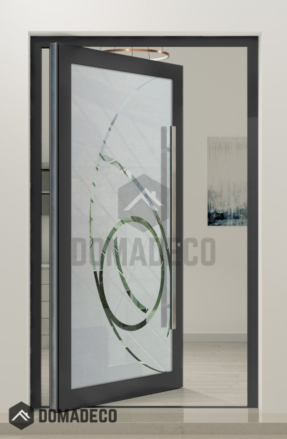 PIVOT Glass S16 - Aluminium-Drehflügeltür mattiert mit transparentem Dekor