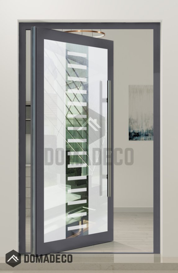 PIVOT Glass S6 - Aluminium-Drehtür, mattiert, mit transparentem Dekor