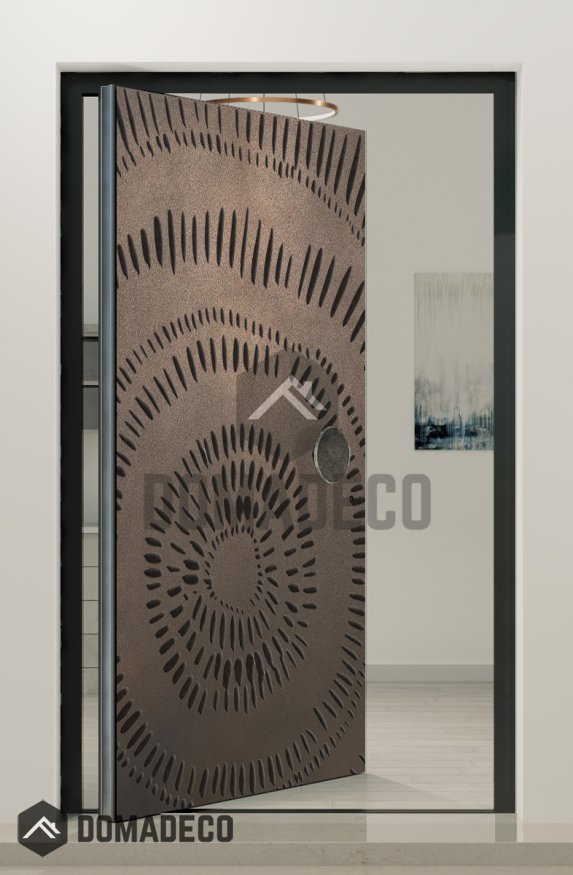 PIVOT M11 - Drehtür mit Bronzetextur aus gefrästem Metall