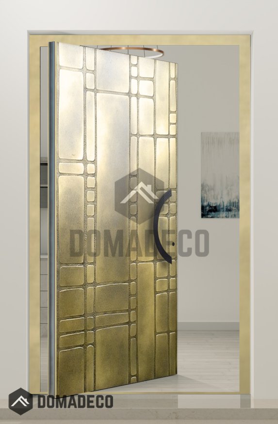 PIVOT M18 - Aluminium-Schwenktür mit Gelbmessing-Struktur aus gefrästem Metall