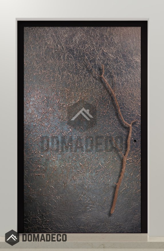 Diese Drehtür ist mit Flüssigmetall verkleidet. Flüssigmetall ist ein natürliches und ökologisches Material, das grenzenlose Gestaltungsmöglichkeiten bietet. Die Kombination aus Metallpulver und Harzen sorgt für ein dauerhaftes und optisch ansprechendes Endergebnis. Mit handwerklichem Geschick und dem Einsatz moderner Anwendungstechniken kann Flüssigmetall jeden Raum in ein Kunstwerk verwandeln und dabei die Umwelt schonen.