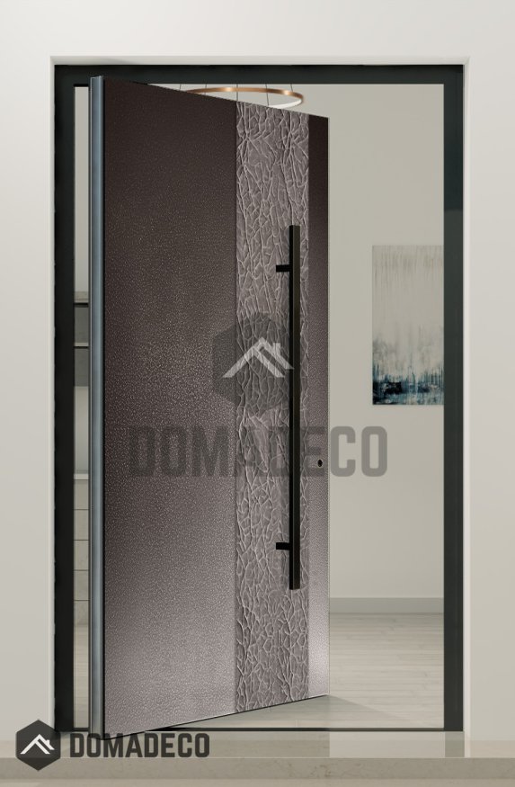 PIVOT M27 – Aluminium-Drehtür mit Tür mit brauner Struktur aus gefrästem Metall
