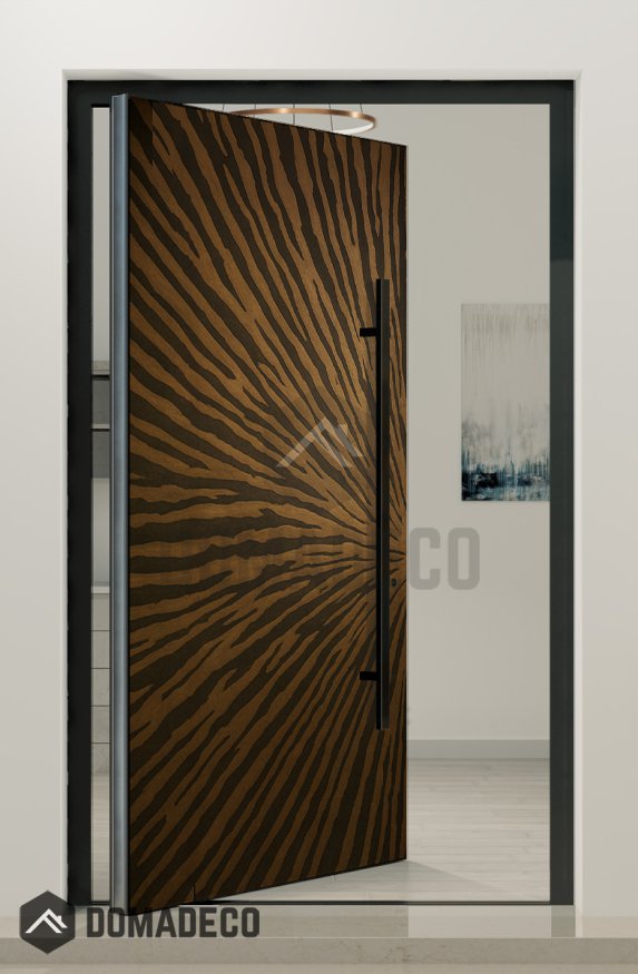 PIVOT M29 – Aluminium-Drehtür mit brauner Struktur aus gefrästem Metall