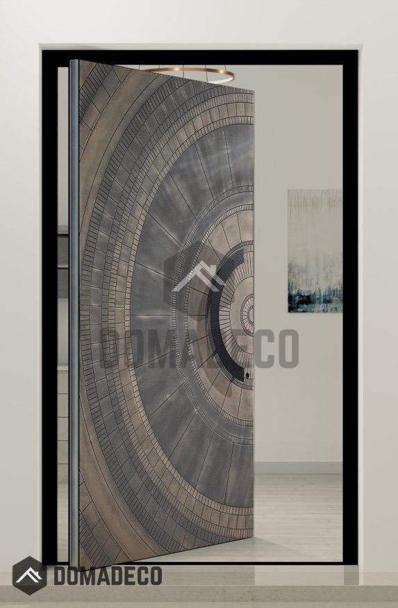PIVOT M6 – Drehtür mit bronzefarbener Struktur aus gefrästem Metall