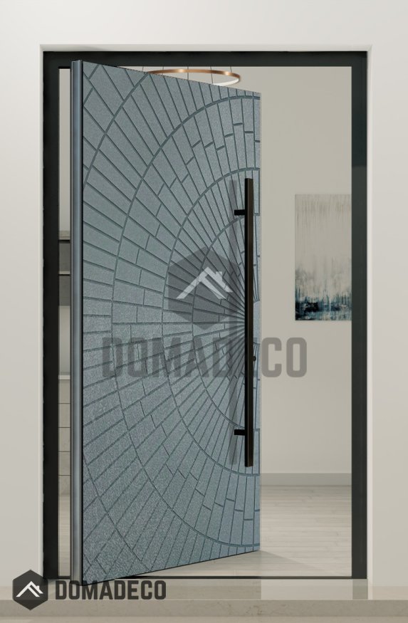 PIVOT M7 – Aluminium-Drehtür mit Zink-Flüssigmetall