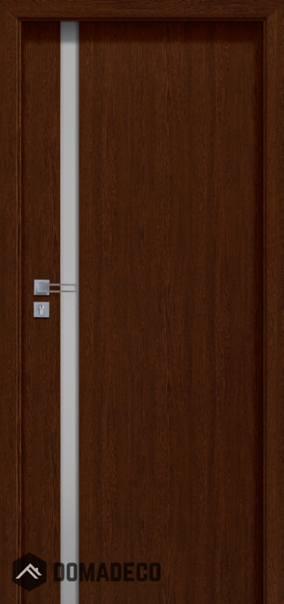 Die Tür besteht aus einer Holzleiste und einem Holzsteg, die mit zwei HDF-Platten mit natürlichem Furnier bedeckt sind. Die Füllung besteht aus einer massiven Spanplatte. Die Modelle A01, A02, A03 sind mit einem 6 mm dicken, weißen, matten, gehärteten Glas ausgestattet. Die Oberkante des Türblattes hat einen Falz im Falzsystem.