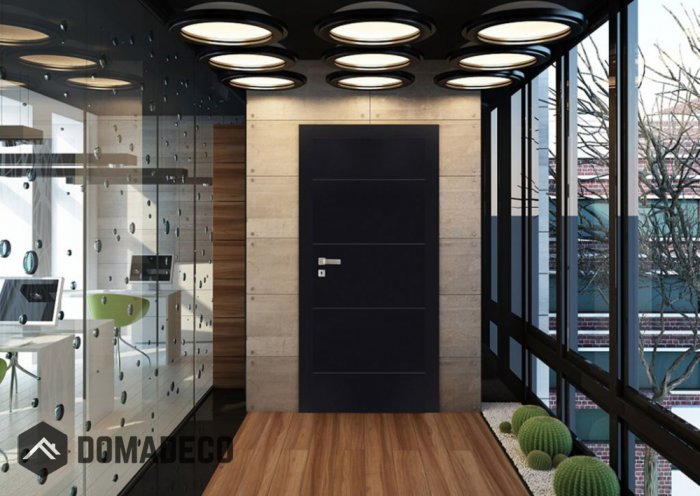 Die Tür besteht aus einem Holzgerüst mit zwei HDF-Platten, die mit ökologischer Acrylfarbe (RAL- und NCS-Farbpalette) beschichtet sind.
