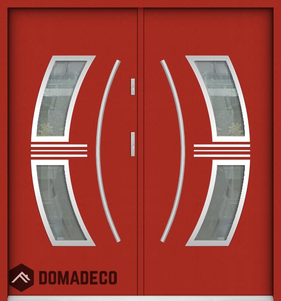 Die Türen bestehen aus Edelstahl. Im Inneren ist es mit PUR-Polyurethanschaum und Holz gefüllt. Die Türblattdicke beträgt 55 mm. Doppeldichtungssystem - Eine Dichtung befindet sich am unteren Rand des Rahmens und die andere im Lagerteil des Türblatts. Sie reduzieren Vibrationen und schützen Ihr Zuhause vor Wärmeverlust. Sie ändern ihre Lautstärke nicht unter dem Einfluss von Wetterbedingungen. Der Türrahmen hat einbruchhemmende Verstärkungen in den Scharnierteilen und Verriegelungspunkten.